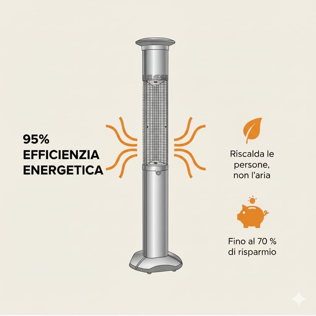 - Puoi scegliere di accendere 1-2 o tutti gli elementi riscaldanti, riscaldando solo dove è necessario