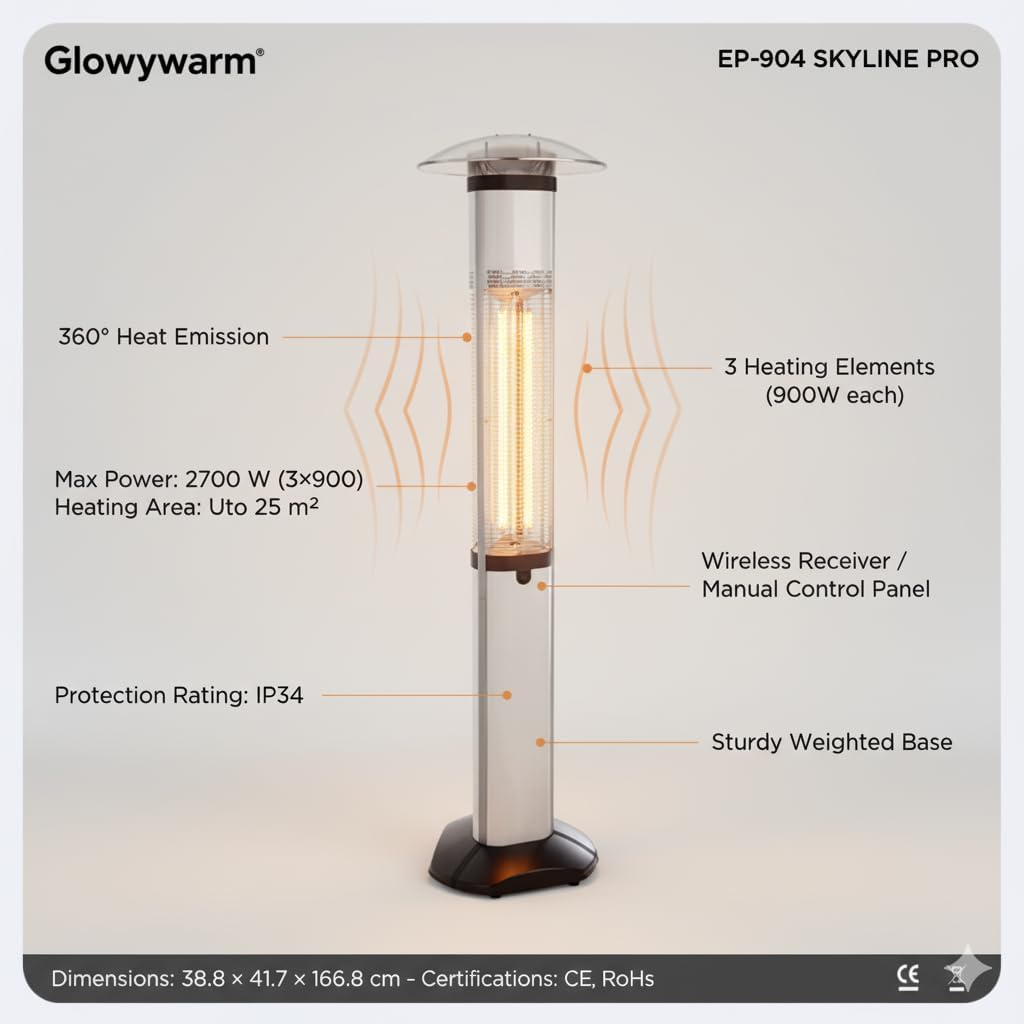 - Riscaldamento ad infrarossi a 360 gradi con luce superiore silenzioso senza luce abbagliante